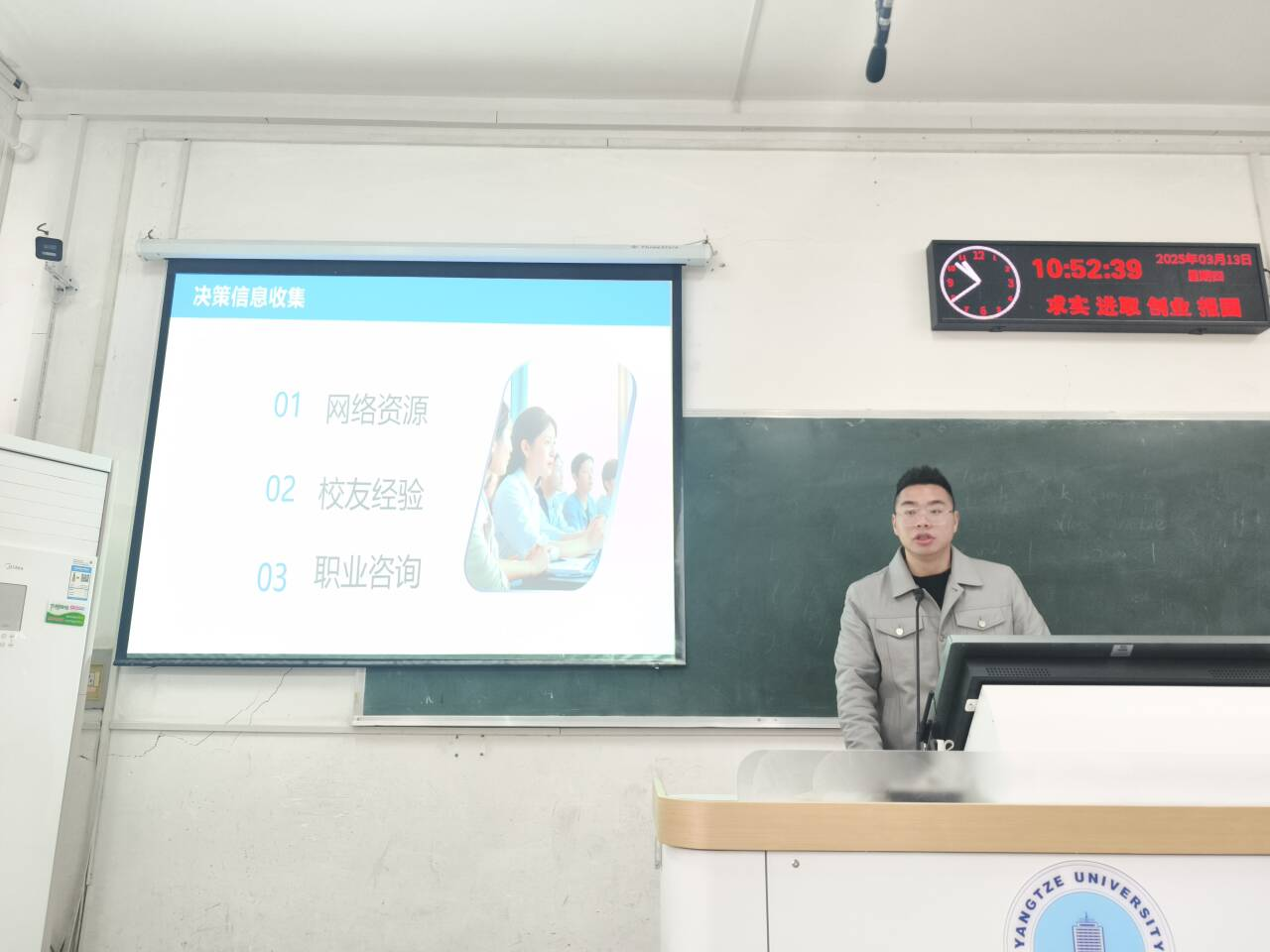 黄浩校友在职场成绩卓著,拥有丰富的行业经验与深刻见解。讲座伊始,他深入剖析当前就业市场的复杂形势,从各行业发展趋势到热门岗位需求变化,为学生勾勒出宏观就业图景。黄浩强调,职业规划并非简单择业,而是个人兴趣、能力、价值观与市场需求的深度融合。他结合自身曲折且成功的职业发展历程,生动阐述如何在不同阶段找准方向。